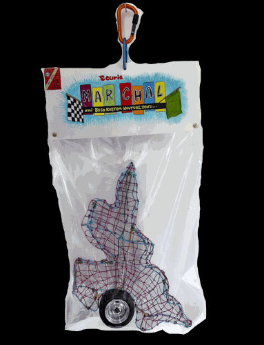 Aluminum wire, Aluminum suspension, 2.5 inches Kyosho tyres, Aluminum Carabiner, Lanaquarelle 300gm paper, Kuretake water color brush markers, Ink, printer matter, brass paper fasteners, Dartek film bag.